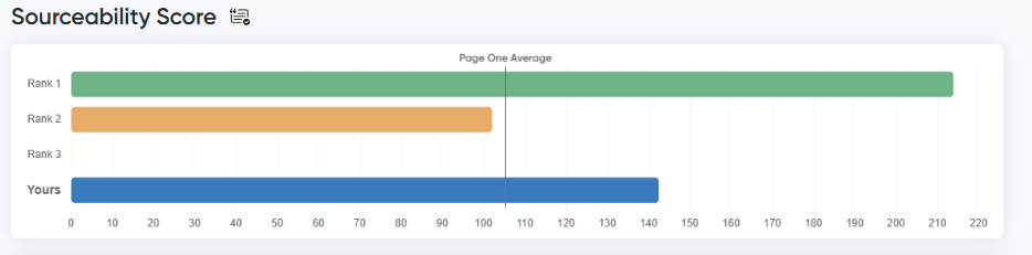 The first section of the report will be Title Score, which assigns a score based on an analysis by a panel of five judges, comprised of some of the most widely used AI models. An optimized title is also generated, which you can use for your page or to recalculate the panel’s analysis.